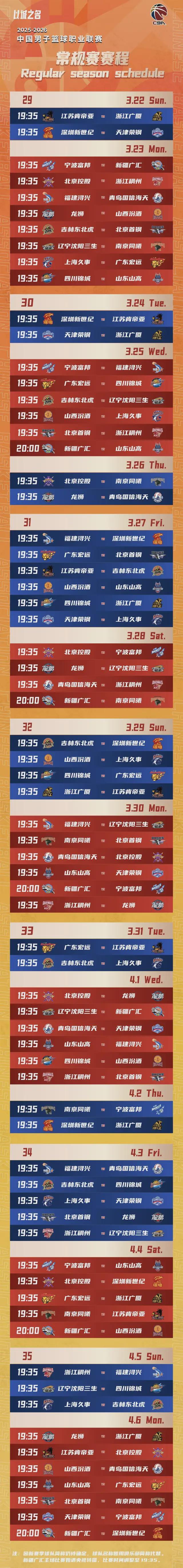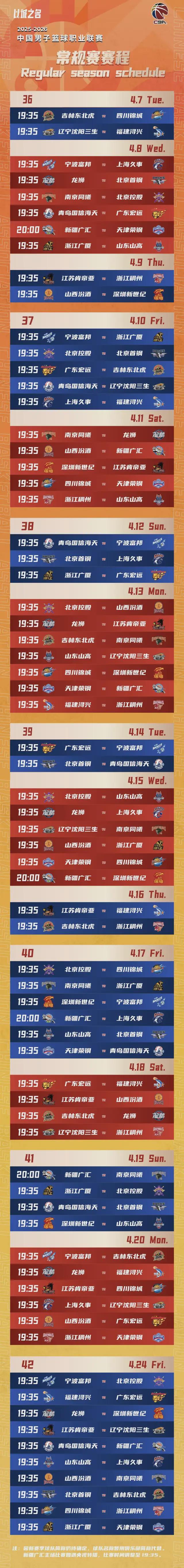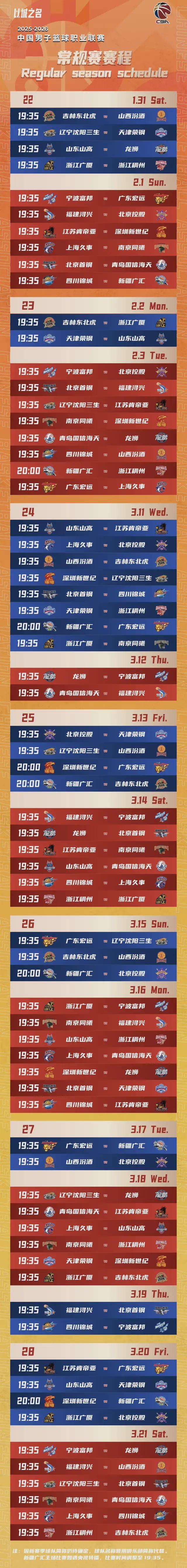 CBA官方公布2025-2026赛季赛程