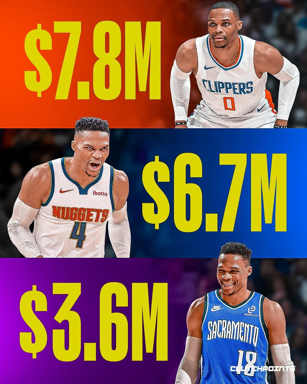 美媒:威少从2亿美元顶薪沦落到拿底薪,联盟的变化太疯狂了