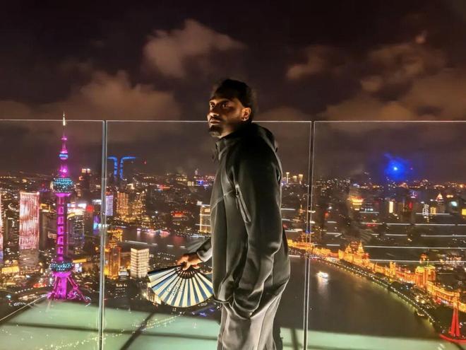 随后,沃尔登上了The Stage白玉兰观景台。站在320米的观景台上,沃尔俯瞰上海的城市夜景。“在这个角度看,感到很震撼。”伴随着音乐,沃尔还在观景台上跳起了舞。