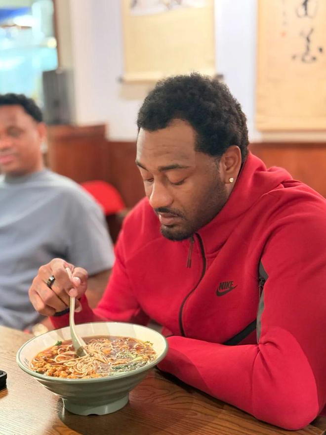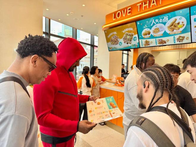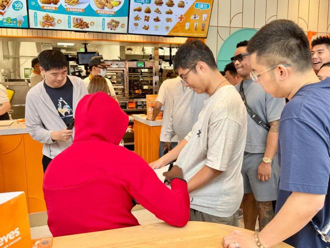 沃尔 走进一家炸鸡店品尝美食,在点单的间隙,还为球迷签名并合影留念。“看沃尔打球的时候我还在上学!那时候我真的很喜欢看他的比赛,我也最喜欢火箭队。没想到今天能和偶像在同一家店吃炸鸡!”一位球迷朋友开心地说。