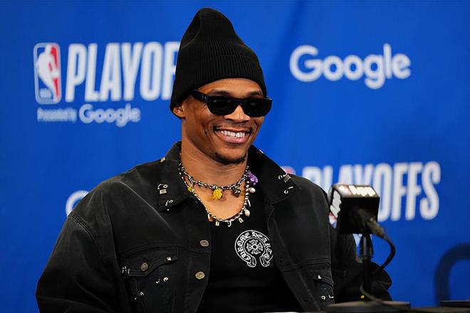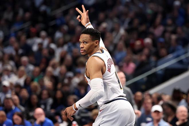 在上赛季的NBA常规赛中,威斯布鲁克在82场比赛中总共代表老东家丹佛掘金出场75次,场均出场时间达到了27.9分钟,场均数据为13.3分4.9篮板6.1助攻1.4抢断0.5盖帽,还有3.2次失误和2.5次犯规,投篮命中率44.9%,三分命中率32.3%,罚球命中率66.1%。到了季后赛,威斯布鲁克总共出场14次,场均出场时间达到了24.1分钟,场均数据为11.7分3.7篮板2.6助攻0.9抢断0.1盖帽,还有2.3次失误和3.2次犯规,投篮命中率39.1%,三分命中率31.7%,罚球命中率70%。