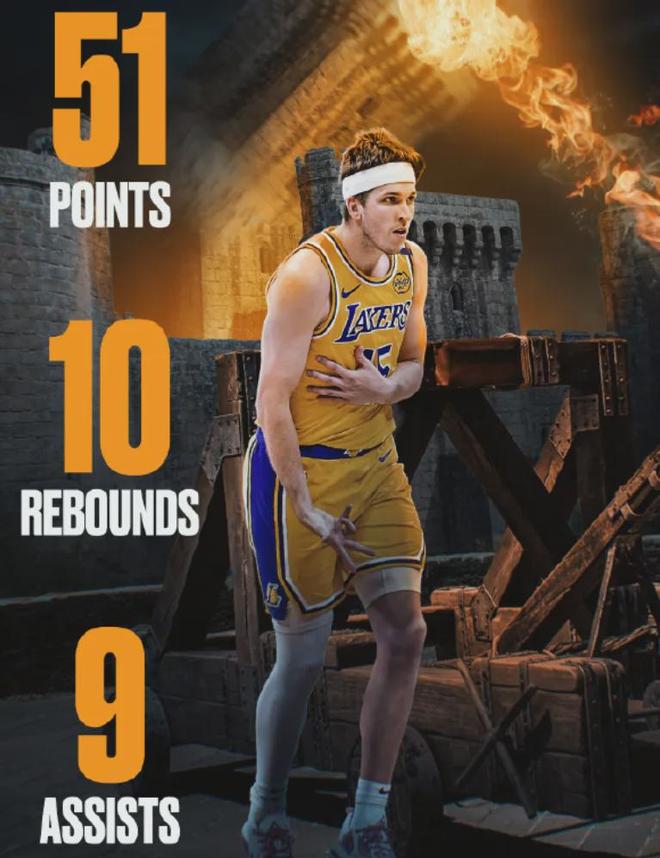里夫斯单场51分准三双,破了个人NBA生涯得分纪录,这个落选秀真的太牛逼了,是NBA自1954年的尼尔·约翰斯顿以来首位拿到50分两双的落选秀,也是NBA史上落选秀的第4次单场50分。