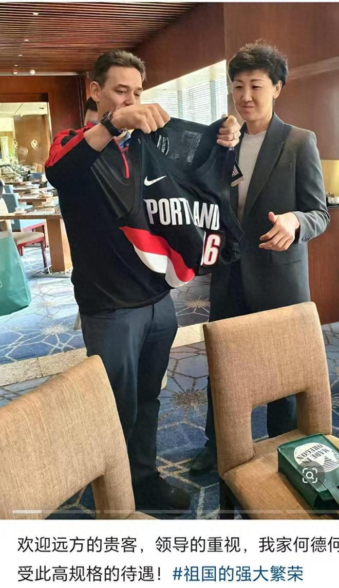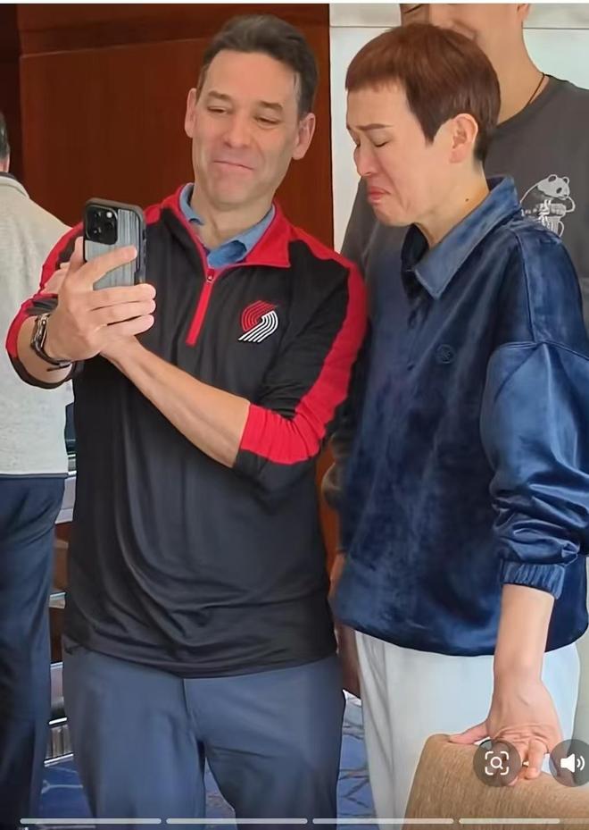 就在杨瀚森表现挣扎的时候,昨天中国篮协秘书长徐岚女士和NBA工作人员来到山东看望了杨瀚森家人,杨爸杨妈和NBA工作人员与杨瀚森打了视频,他们在视频前不断说着什么,也许是杨妈过于想念儿子,也许是得到领导和NBA官方人员的看望,她感动得热泪盈眶,并转过面去掩面而泣。随后杨妈在社媒发文,感概万分:“欢迎远方的贵客,领导的重视,我家何德何能受如此高规格待遇。”看得出杨妈非常感动。