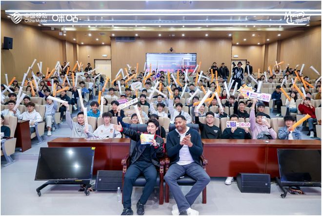 正午时分的图书馆报告厅座无虚席,阳光与现场荧光棒的交相辉映,勾勒出青春热血的鲜活图景。本次活动由山东移动5G-A网络全程护航,咪咕视频高清直播信号准时开启,公牛与开拓者的赛场对决实时呈现。清晰的画面传递、立体的音效渲染,让学子们仿佛“置身”NBA赛场,沉浸式感受每一次突破、扣篮与绝杀带来的紧张刺激。值得一提的是,从山东走出的NBA篮球新锐杨瀚森成为现场焦点,这位正征战NBA的新星,其拼搏故事与技术亮点经大屏展播,深深唤起了学子们对本土篮球人才的关注与自豪。