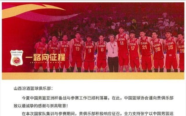 山西男篮官博分享篮协感谢信:将继续坚定不移地支持中国篮球事业