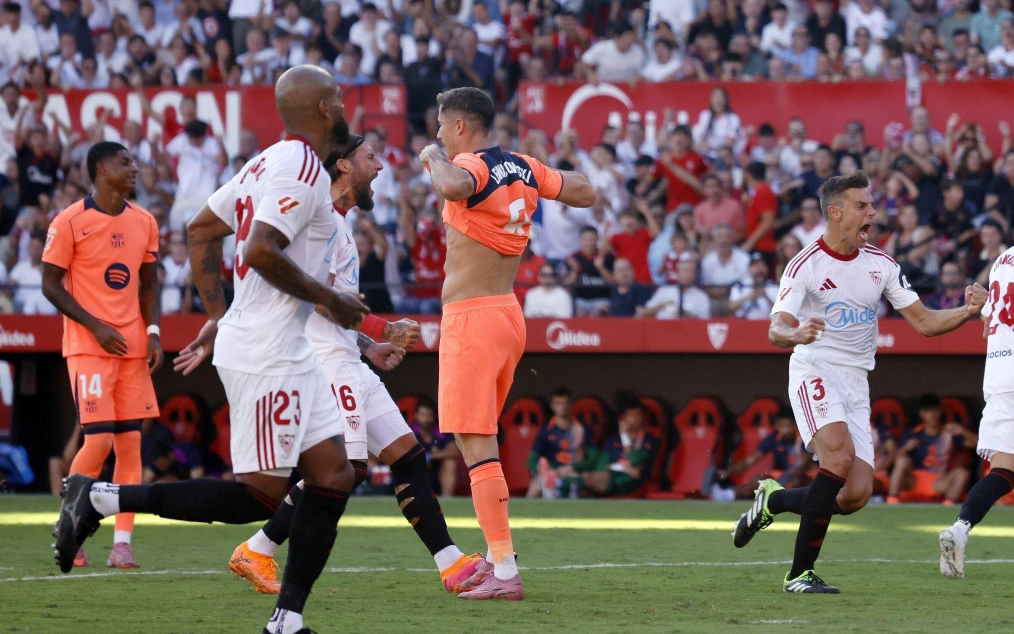 全面哑火,莱万客战塞维利亚全场零射正+失点