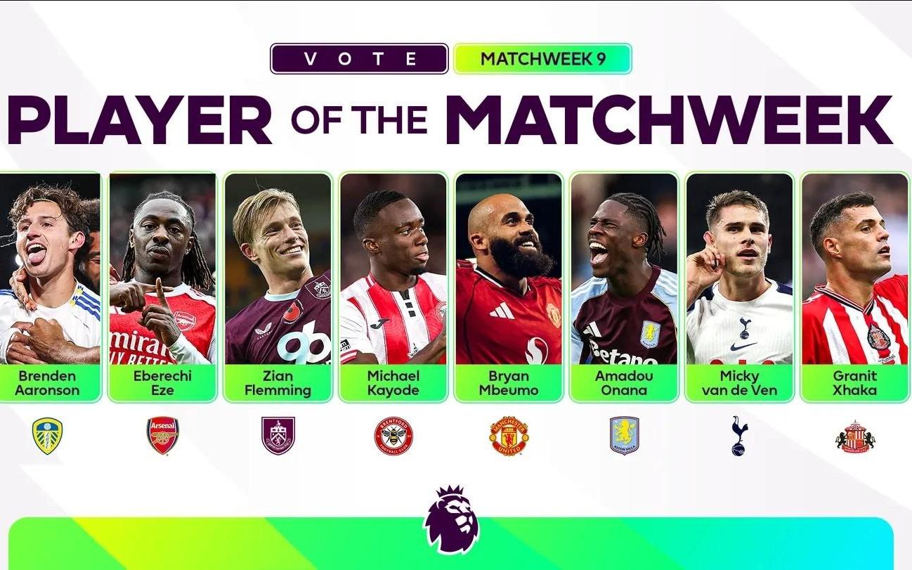 英超第9轮最佳球员候选:埃泽、姆伯莫、范德芬、扎卡在列