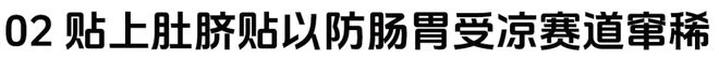 但是遇见天冷的时候,肚脐受凉很有可能引发肠胃痉挛或者腹泻,不管是停下来走走还是中途去上厕所,节奏打乱总是会影响表现。当然即使是气温不低,也不要忽略肚脐部分的保暖措施,对于部分易肠应激或者敏感的跑者,即使没有穿短背心,肚脐也会因为一点凉意而拉肚子。可以在跑前贴上一张肚脐贴作为双重保险。