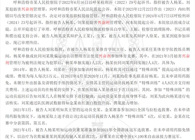 【文眼】刘宝、杨明除被反兴奋剂中心通报禁赛外,还被所在单位处理,更是被法办判刑。该案被称为全国首例“妨害兴奋剂管理罪”案。
