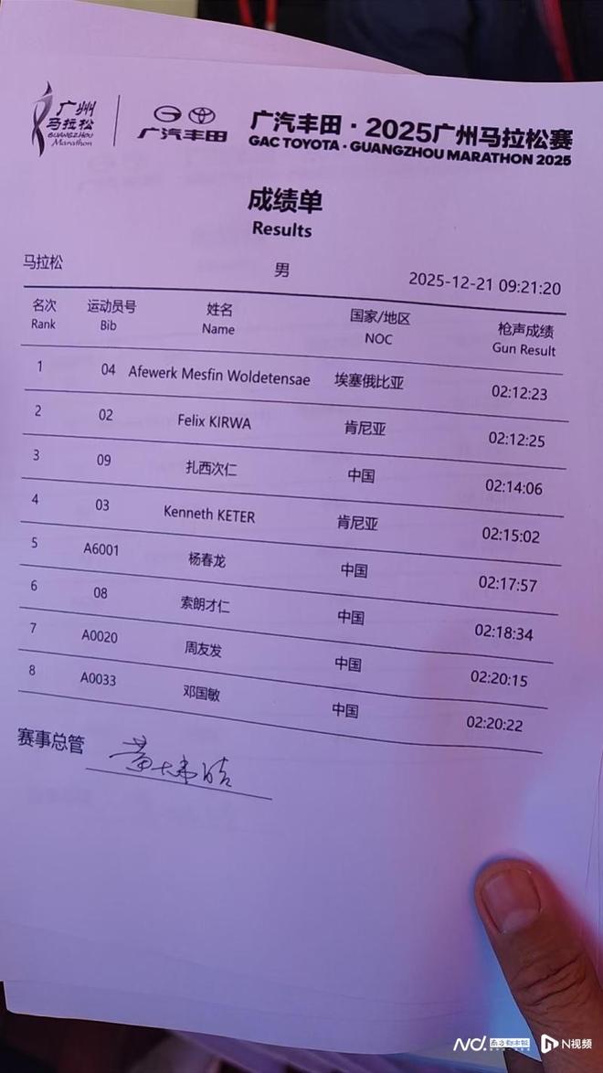 最终,他的同胞阿费沃克·梅斯芬·沃尔德腾萨耶以2小时12分23秒的成绩夺得男子组冠军。肯尼亚选手菲利克斯·科瓦以2小时12分25秒夺得亚军。而来自西藏的扎西次仁以2小时14分06秒的成绩排名第三,夺得国内男子组冠军。