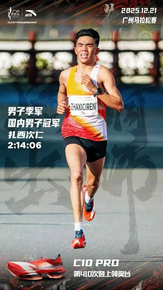 值得一提的是,他们的跑服以及脚上的C10 Pro跑鞋都印有同一个品牌logo——安踏。这意味着,在这些顶级跑者的背书下,安踏以近乎「包圆领奖台」的存在感,为这场年度收官战增添了浓墨重彩的一笔。