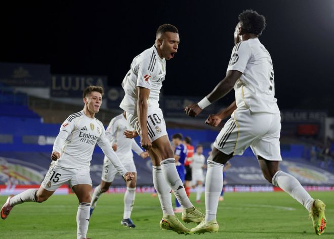 下半场易边再战,皇马用阿森西奥换下阿拉巴。第65分钟,姆巴佩在禁区右侧射门偏出。随后,皇马获得禁区外任意球机会。姆巴佩主罚,直接射门,稍稍偏了一点。第77分钟,恩约姆放倒维尼修斯,被红牌罚下!第80分钟,姆巴佩终于抓住了机会,他接到居莱尔的直塞球,转身射门打进,完成绝杀!随后圣克里斯犯规,两黄变一红被罚下。9人应战的赫塔费无力回天。最终皇马1-0险胜赫塔费,继续高歌猛进。