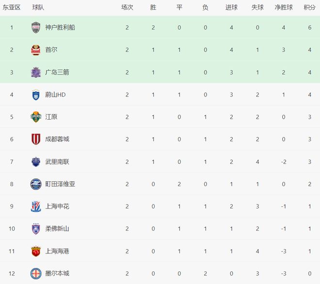 随着申花11,神户10绝杀,亚冠最新积分榜出炉:蓉城飙升至第6