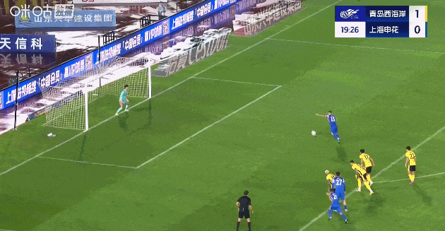 上半场第11分钟,青岛海牛的萨里奇助攻,兰克尔禁区内爆射率先破门。