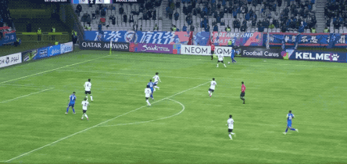 第14分钟,吴曦送出精准长传,米内罗的跑位带走防守球员,阿苏埃的远射击中横梁。